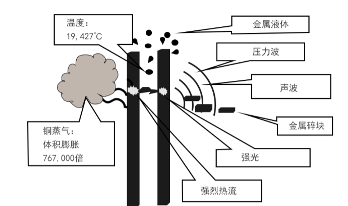 图1-1铜排之间产生的电弧及其效应