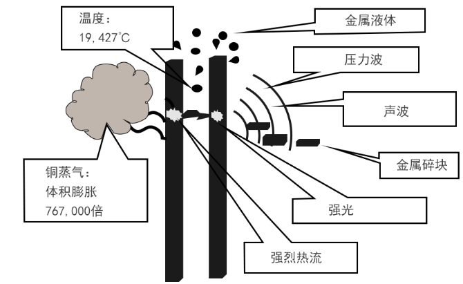投乐彩图1-1铜排之间产生的电弧及其效应